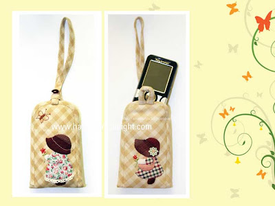 A uniquely handmade padded case to fit and protect your gadgets. Appliqued with sunbonnet sue. It is attached with a wrist ring so you can carry it on your wrist or hang it at your favorite place.